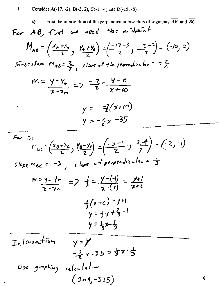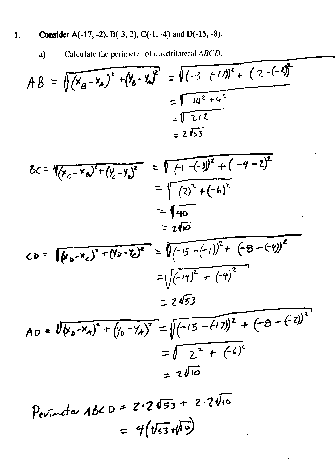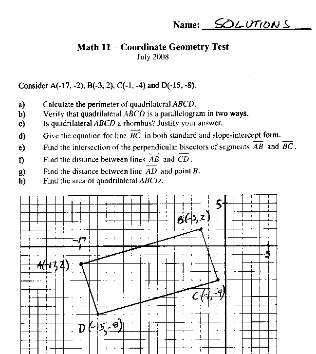 Coordinate Geometry practise test solutions