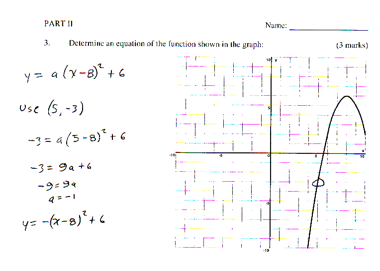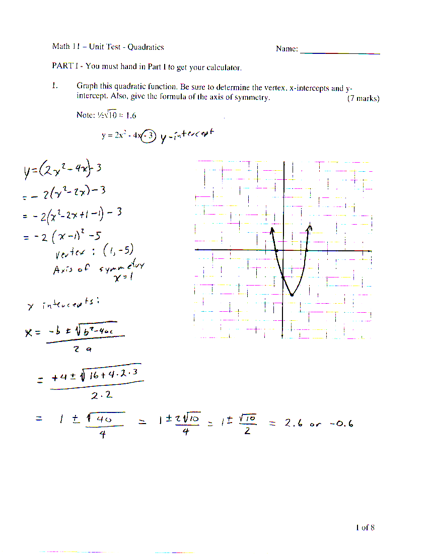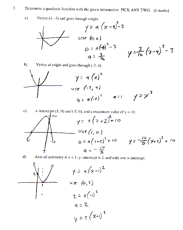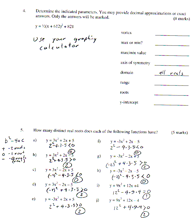 Quadratic practise test solutions