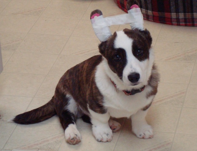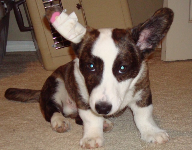 March 31 - So we taped them up. Note that the tie between the ears was too